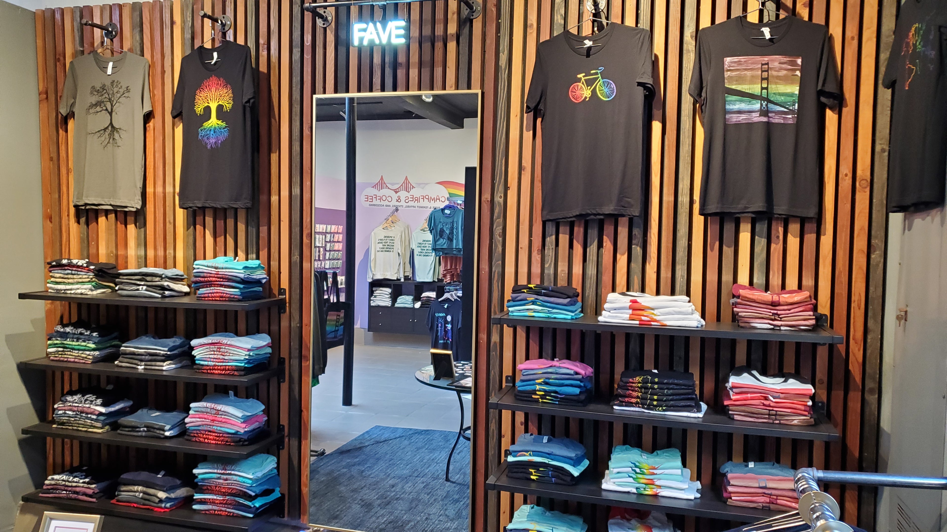 Our mall features the work of many queer artist as well as our FAVE Brand merchandise.